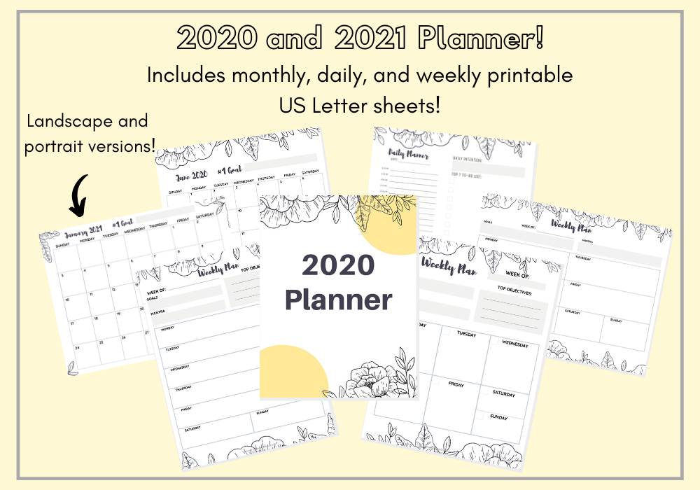 2020 and 2021 Monthly Planners